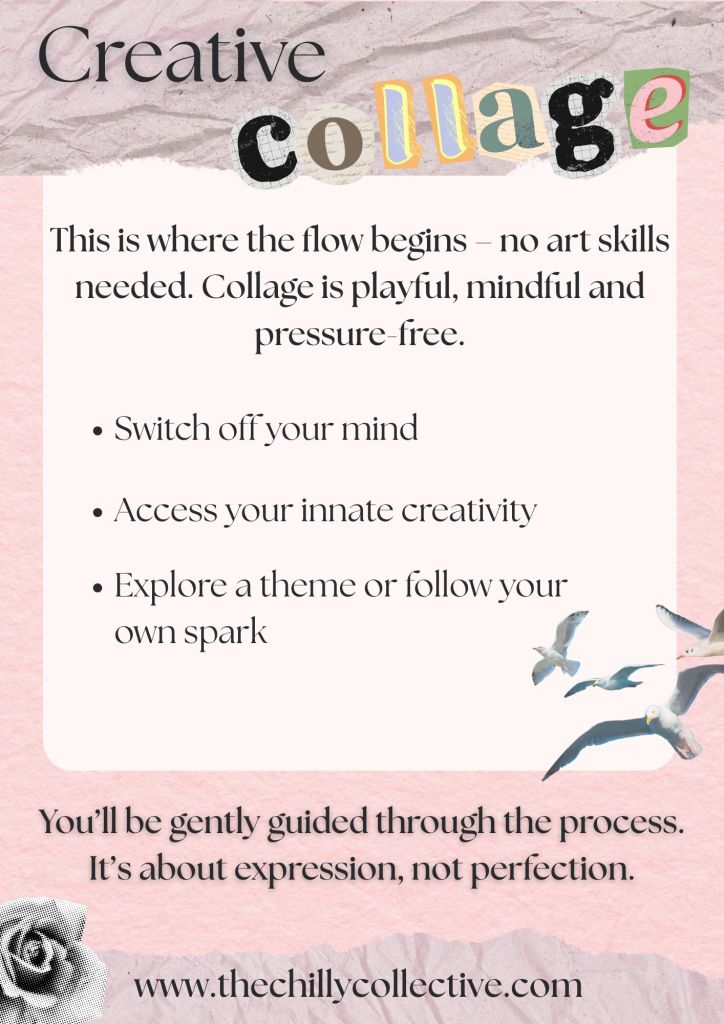 This session invites you to slow down and tune in—from this grounded place, we ease into the creative process. Using scissors, paper, and a spark of curiosity, you’ll be guided through crafting your own collage — themed or intuitive, solo or shared. No art skills needed, no pressure to “get it right.” Just space to explore, reflect, and create with intention.
